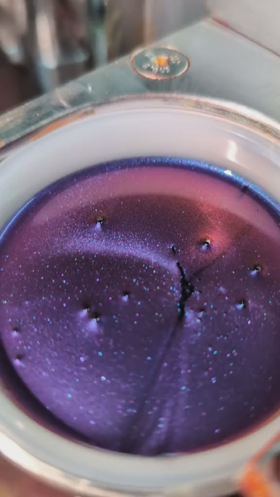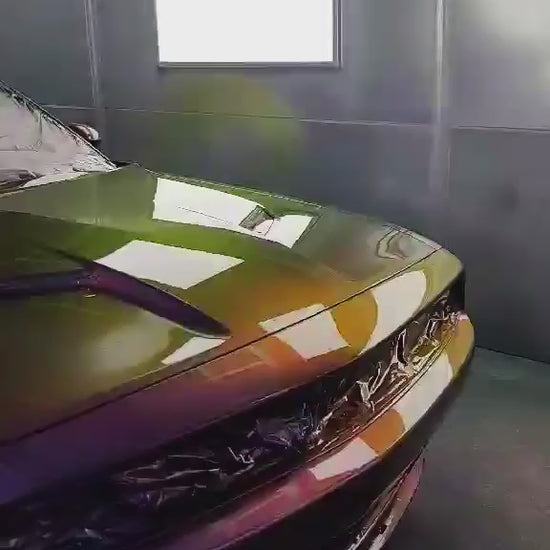 is a strong color changing pearl pigment that has purple/blue/pink/orange/gold/green tones. This color is great for full coverage color change applications (over black) or as effect over other colors like red green, or blue.