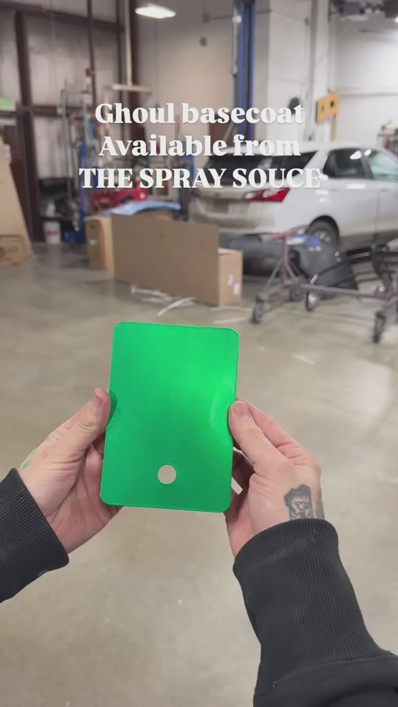 Details include: PSI , needle size, ground coat, and amount of coats. Plus a QR code that goes directly to the Vehicle Paint Kit to purchase!