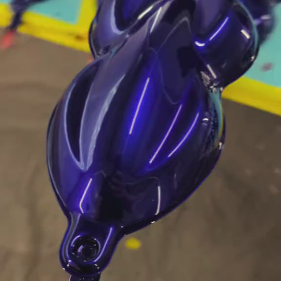 This color is a candy color that has amazing depth and a subtle flop between blue & purple ( aka "blurple"). Like all candy basecoats, lighting and angles play auge roll on how this color looks. This color is best over a black sealer as shown on the speedshape & mustang in photos.