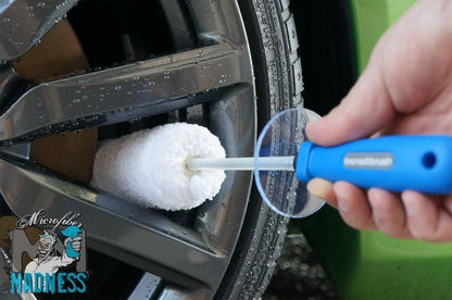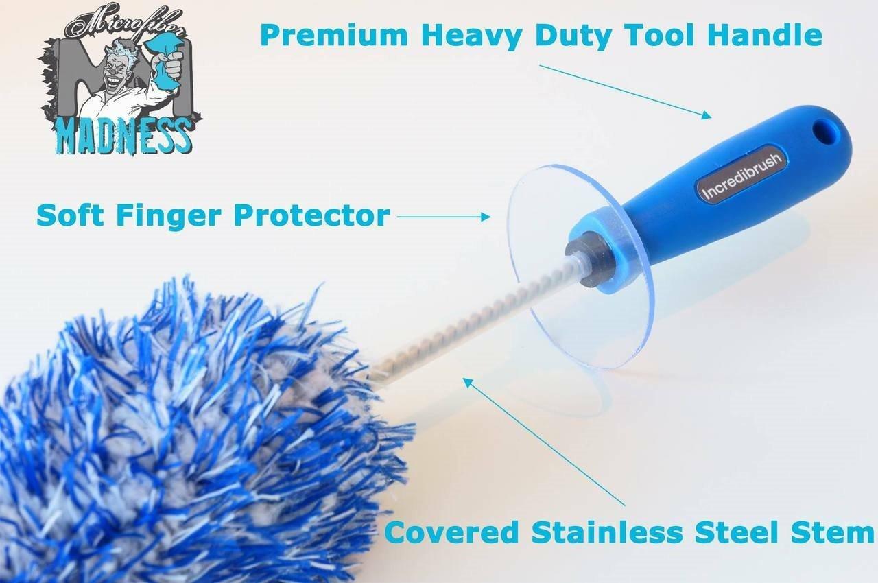 The Microfiber Madness Incredibrush is the answer to every enthusiasts dreams! It features a rustproof stainless steel stem dressed with a nylon coating to protect from any possibility of scratching your finish. Additionally a foam core was developed with high water absorption so you have plenty of water dispersion while cleaning your wheels. The industrial strength molded plastic handle is designed to provide a firm grasp and never slip even when wet!