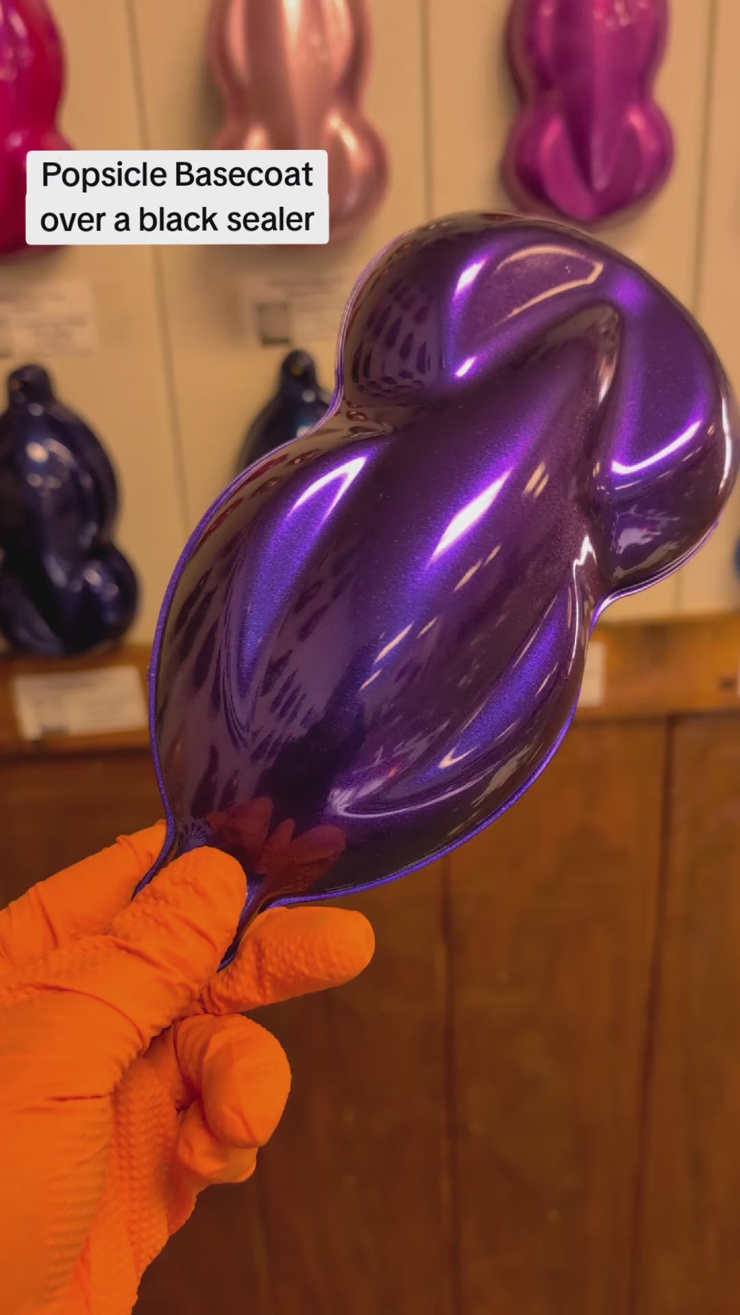 is an epic Alpha Custom Color with the best aspects of the colorshifts and custom colors! Popsicle is a vibrant purple with a pop of a course colorshifting pearl. This provides an effect unline any other color on the market, both in the sun and shade! You get a subtle "ghost"or "interference" like effect of purples pinks and gold without the difficulty of spraying a tri-stage.