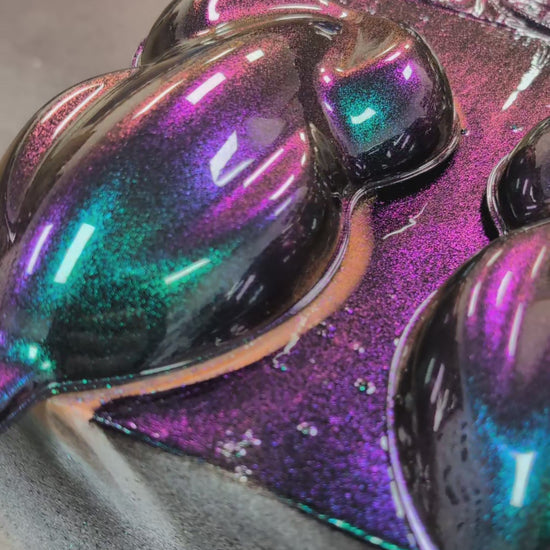 is a strong color changing pearl pigment that has purple/green/blue/bronze/red tones. This color is great for full coverage color change applications (over black) or as effect over other colors like red green, or blue. This pigment is for liquid wrap, airbrushing, or bedliners only.