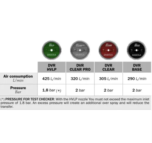 | Air Inlet Pressure | 1.8 β 2.0 bar / 26.1 β 29 psi | 2.2 bar / 32 psi | 2.2 bar / 32 psi | 2.0 bar / 29 psi |