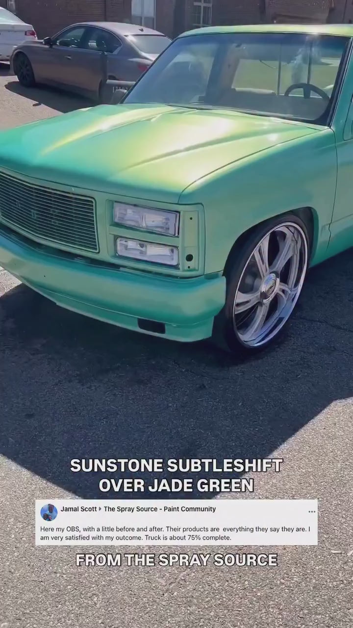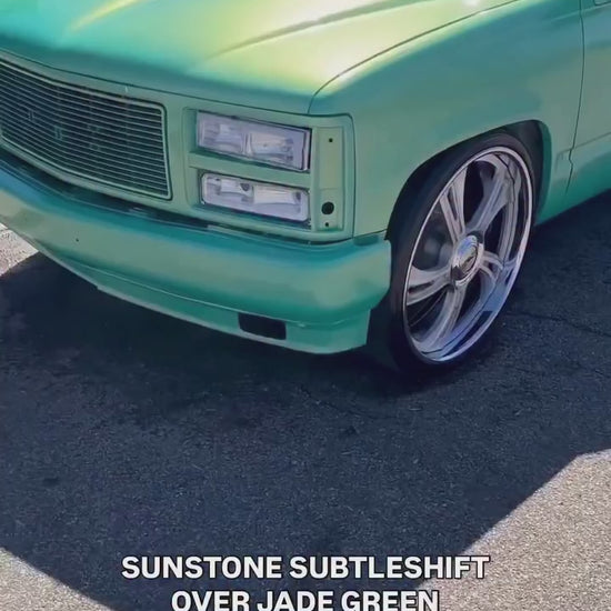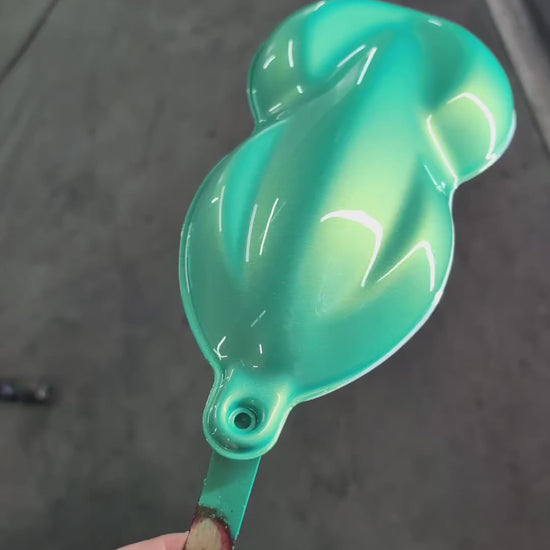 is a subtle color changing pearl pigment that has green/blue/yellow tones. This color is great for full coverage color change applications (over blue) or as effect over other colors like red, yellow, green, or blue. This pigment is for liquid wrap, airbrushing, or bedliners only.